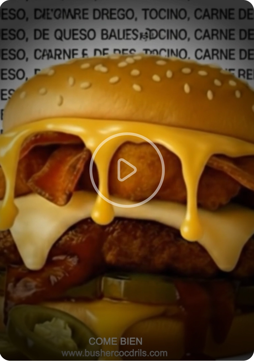 Burger Indian New🍔: Aros de cebolla🧅 Salsa de queso🧀 Carne de res🥩 Tocino🥓 Bbq piña🍍